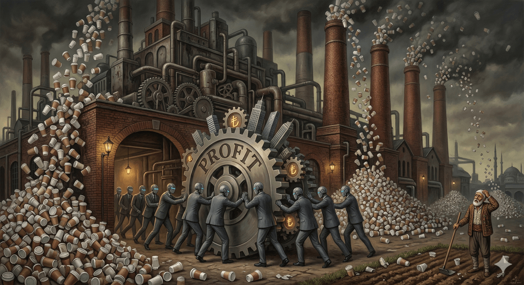 Hatırla serflerin lordları için çalışmakta olduğu zamanları, hatırla mülkiyetin çok daha az kişi elinde toplandığı zamanları (tabii ki de bugünü kastetmiyorum, yani belki). Bu zamanlar elbette ki makineleşme ve sanayi devrimi ile başlamadı. Belki de “çitleme(enclosure)” döneminin ilk tohumlarını attığı bu dönüşüm, makineler sayesinde hız kazandı. Önceden olan neydi? Çiftçi kendi ekinini eker biçer, kendine ve feodal beyine vereceği vergiye yetecek kadar üretim yapardı. Aynı şekilde başka meslek erbabı da bunu küçük çevresine yetecek kadar gerçekleştirirdi. İşin içerisinde aşırı bir üretim fazlası ve dolayısıyla kâr maksimizasyonu yoktu. Hatta öyle ki belki bu fazlalığı etrafına satmak mümkün olmadığı için zayi olan birtakım ürünler olarak bile görüyor olabilirdi. Bir düşün; ne kadar tuhaf, fazlalığın zarar olarak görüldüğü bir dünya bize çok yabancı, çok ters. İçemeyecek bile olsan venti boy almanın daha kârlı olduğu bir dünyada yaşıyoruz sonuçta.